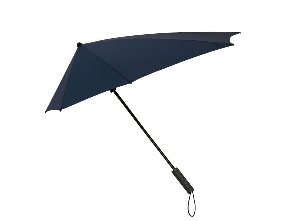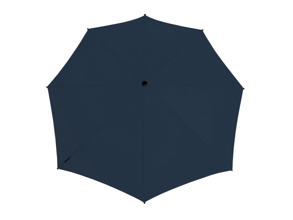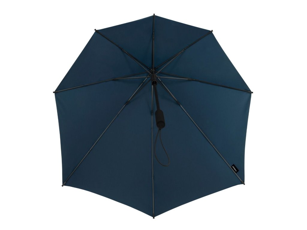 Aerodynamický dáždnik so širokou zadnou stranou pre maximálnu ochranu pred dažďom, čierna tyč, rám zo sklenených vlákien so zosilnenými kĺbmi, čierna rukoväť, s ochranným puzdrom.