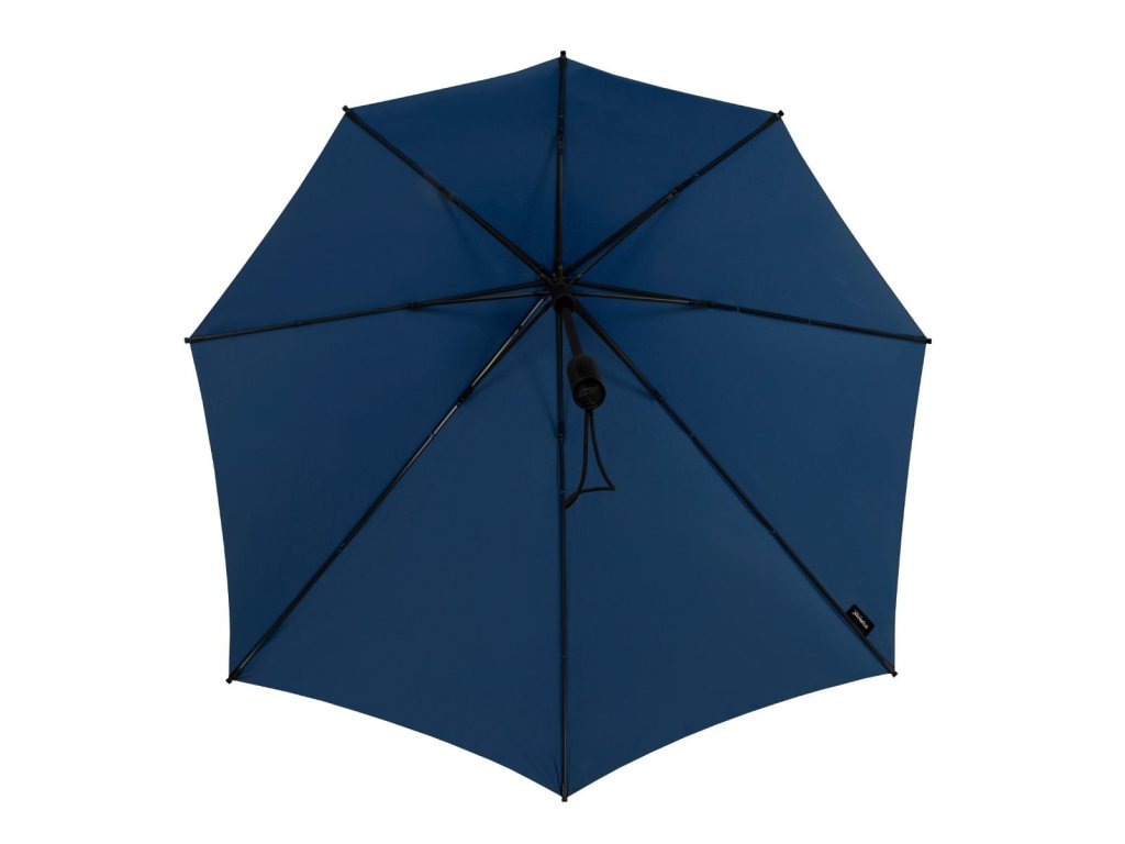 Aerodynamický dáždnik so širokou zadnou stranou pre maximálnu ochranu pred dažďom, čierna tyč, rám zo sklenených vlákien so zosilnenými kĺbmi, čierna rukoväť, s ochranným puzdrom.
