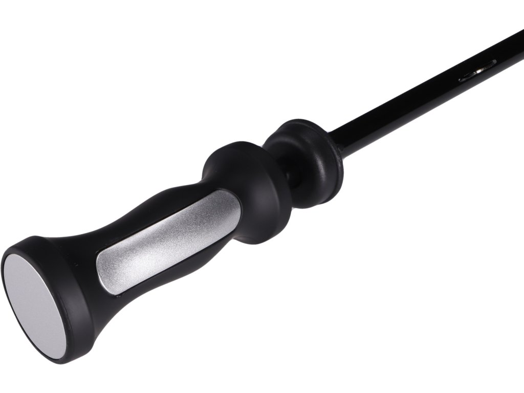 Golfový dáždnik XXL, priemer 140 cm, vetruodolný, čierna sklolaminátová tyč a extra pevný dvojitý sklolaminátový rám, čierna pogumovaná rukoväť, strieborné lemovanie a PVC puzdro.