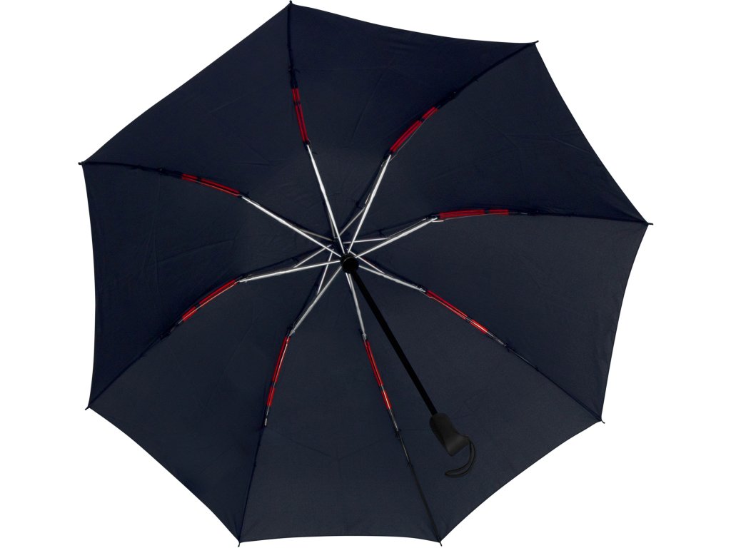 Skladací dáždnik s reverzným skladaním, vetruodolný, automatický systém otvárania a zatvárania, 3-dielny, čierna kovová tyč a hliníkový rám s červenými sklolaminátovými a čiernymi kovovými rebrami na konci, rukoväť v zodpovedajúcej farbe a s puzdrom.