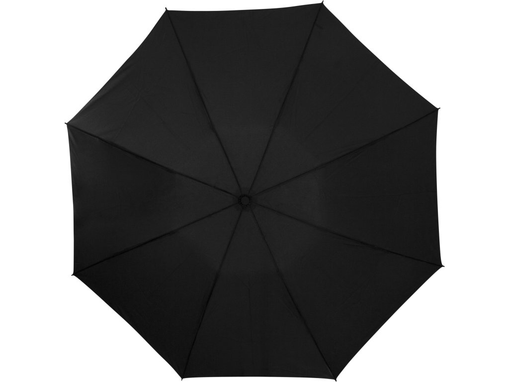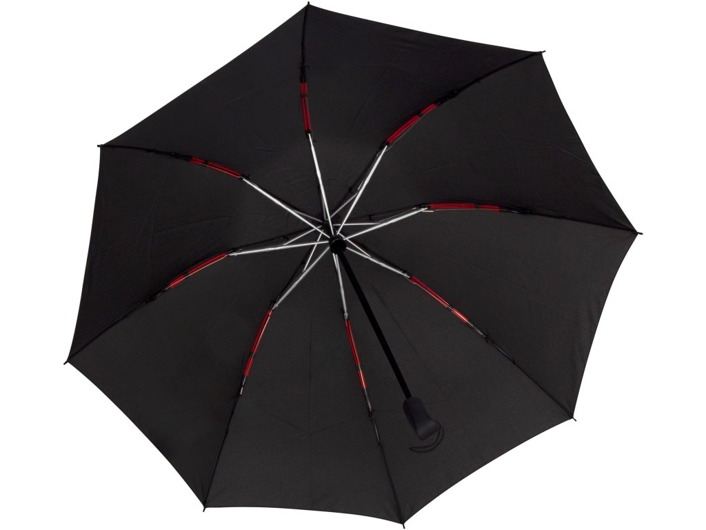 Skladací dáždnik s reverzným skladaním, vetruodolný, automatický systém otvárania a zatvárania, 3-dielny, čierna kovová tyč a hliníkový rám s červenými sklolaminátovými a čiernymi kovovými rebrami na konci, rukoväť v zodpovedajúcej farbe a s puzdrom.