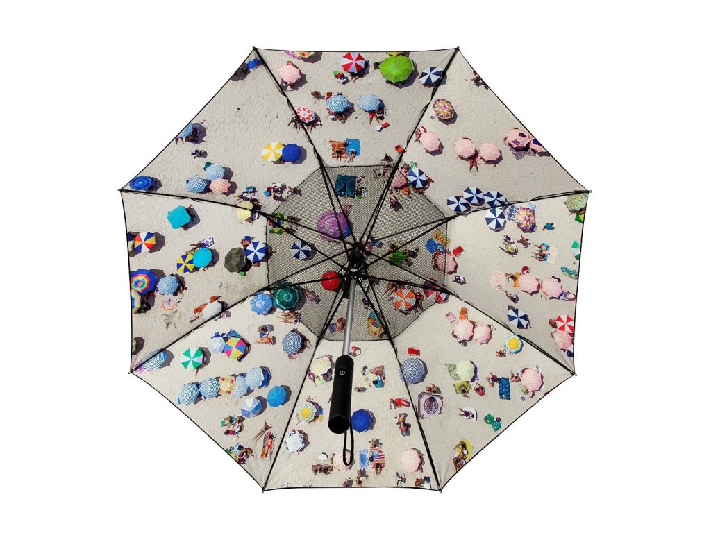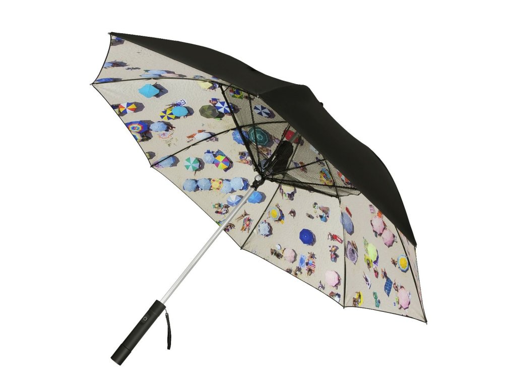 Chladiaci dáždnik s integrovaným ventilátorom s povrchovou úpravou UPF50+, ktorá poskytuje ochranu pred škodlivým UV žiarením. Kryt je plne odolný voči vetru, takže ho možno používať aj počas veterných alebo daždivých dní.